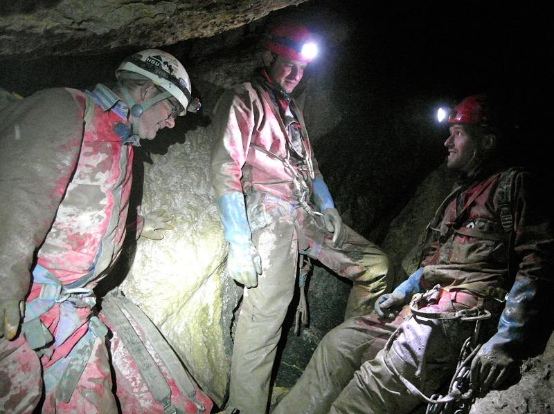 Das Bettenhöhle-Einspeiseteam nach getaner Arbeit. Hubert Blättler (links), Simon Berger (mitte), Thomas Breu (rechts). Nicht auf dem Bild: Diomira Uebelmann. (18.05.2013, Foto: Diomira Uebelmann)
